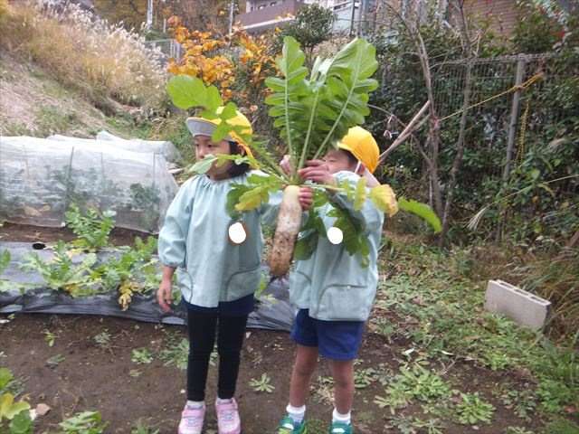 【News】 2019年12月10日 大根を収穫しました 年中さんが種から植えた大根の収穫をおこないました^^ 立派な葉の付いた大根に育ちました^^ お鍋、おでん、大根おろし、サラダ、お漬物、煮物と大根レシピはたくさん!栄養満点の大根が美味しい季節ですね^^ « フィリピンとタイからのお... 一覧へ ロボット製作~サレジオ高... » 【News】一覧 News 4月23日(金)園庭開放 2021年04月06日 News 4月のカンガルーひろば(保育室開放) 2021年04月01日 News 【予約】2021年4月20日(火)季節の手形足形アート 2021年04月01日 News 2021年度入園式、始業式について 2021年04月01日 News 第4回卒園式 2021年03月17日 News サレジオ高専との連携保育 2021年02月24日 News 【募集開始3/1~】2021年度 プレクラブ「エンジェル」 2021年02月17日 News 【募集中】2021年度 プレスクール「ペンギン」入会のご案内 2021年02月17日 News 【募集中】2021年度プレスクール「こばと」入会のご案内 2021年02月17日 News 第80回全国教育美術展個人賞 2021年02月10日 【News】一覧 News 10月25日(土)来園に関するお願い 2025年10月24日 News 【11月の予定】保育室開放とイベント:0歳~2歳児対象、園庭開放:0歳~未就園児、土曜の広場 2025年10月24日 News 【1歳~】2025年度プレ「エンジェルクラブ」随時募集中 2025年09月30日 News 【10月の予定】保育室開放とイベント:0歳~2歳児対象、園庭開放:0歳~未就園児、土曜の広場 2025年09月25日 News 【2026年度 2歳児募集要項】 2025年09月06日 News 町田サレジオ幼稚園公式Instagram 2025年07月10日